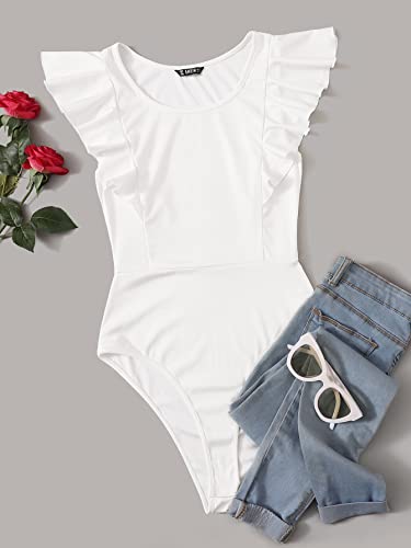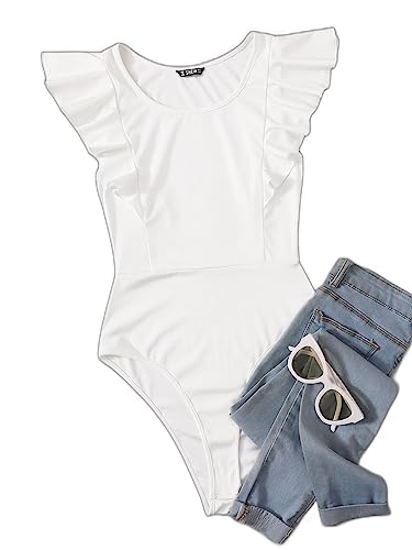 SHEIN - Women Frenchy Solid Ruffled Cheeky Cut Bodysuit
