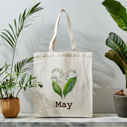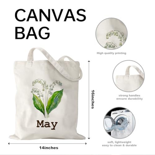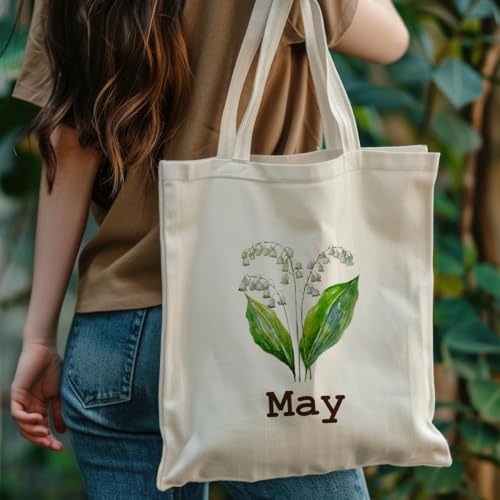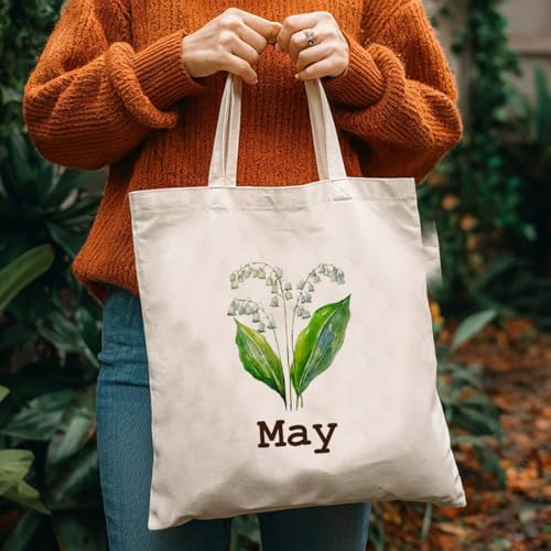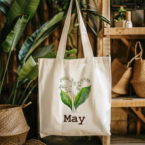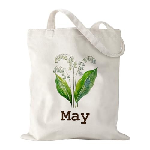 BQXS - Women Gifts for Birthday, Birth Month Flower Tote Bag, Unique Bridal Party Gift Bridesmaid Wedding Tote Gift Best Friend Gift Lily of The Valley Tote Bag Mother's Day Birthday Gifts for Women, May,