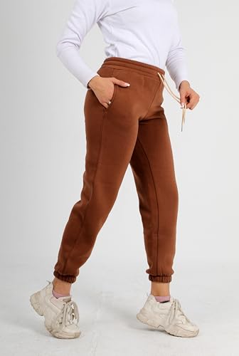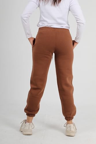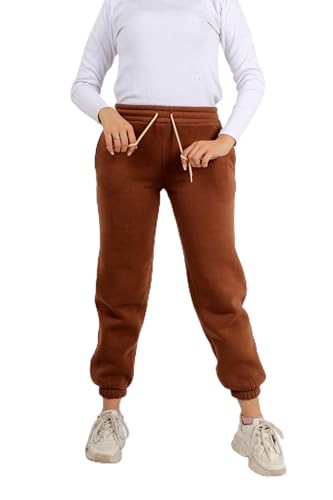 Generic - Women Girls Winter Brown 100% Cotton (Milton) Elastic Waist with Drawstring Elastic Ankle 2 Pockets Comfortable Practical Casual Fashion Gym Club College Friends Outings