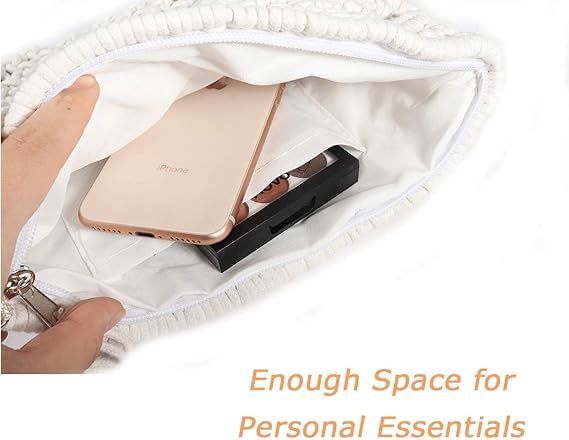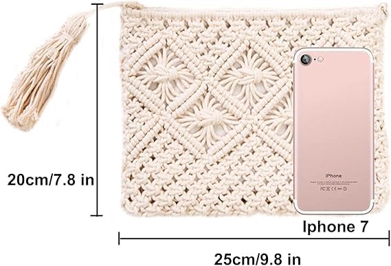 Generic - Women Handbags Crochet Tassel Handbag Macrame Hand Woven Straw Cotton Handbags Handbags for Women - White