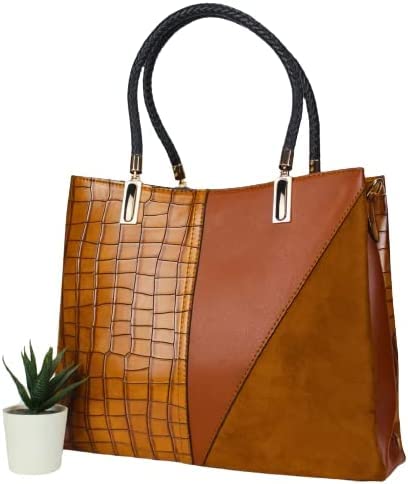 Generic - شنطة يد وكتف حريمى- للخروجات والسهرات - جلد مغطى بطبقة pu ضد الماء و البقع 1010 -تطعيم ثلاثى - لون هافان، متعدد، للنساء
