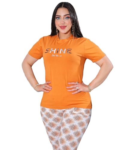 Generic - بيجامات منزلية للنساء ناعمة للارتداء الصيف بيجامة نصف كم مطبوعة وبنطلون منقوش