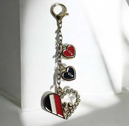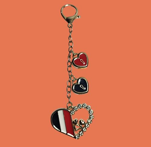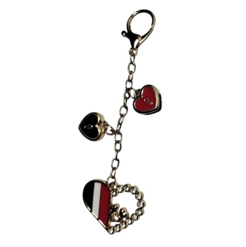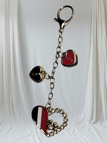 Generic - ميدالية مفاتيح نسائية بتصميم قلوب، معدن مطلي ذهبي، أحمر وأسود، 12 سم، مع مشبك لحقيبة اليد
