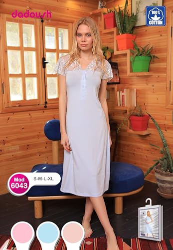 Dadoush - Women Lace Sleeve Short Nightgown - Summer Midi Nightgown (SKYBLUE, M)
