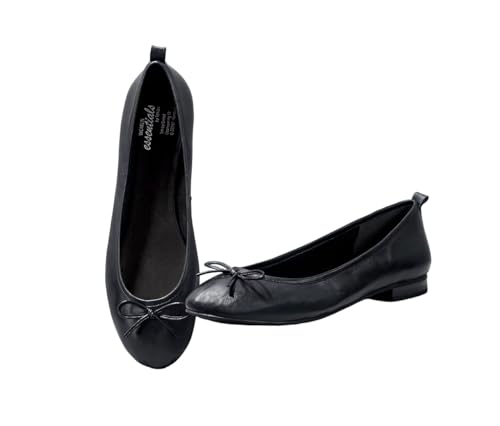 Generic - حذاء باليرينا مسطح من الجلد للنساء تشيبو اسود مقاس 39 EU