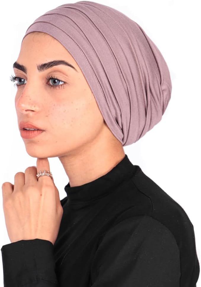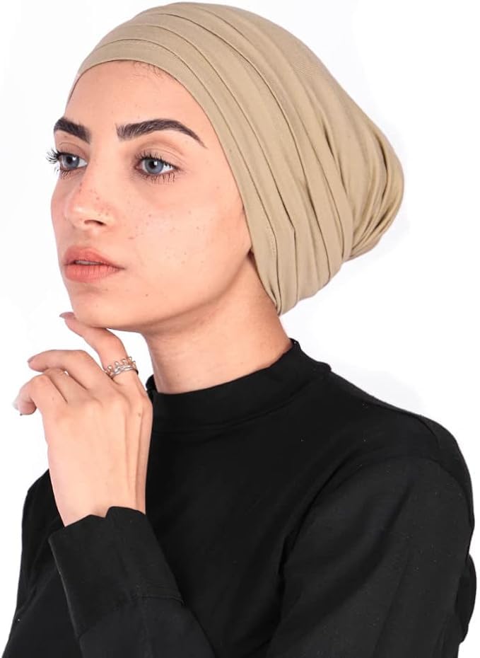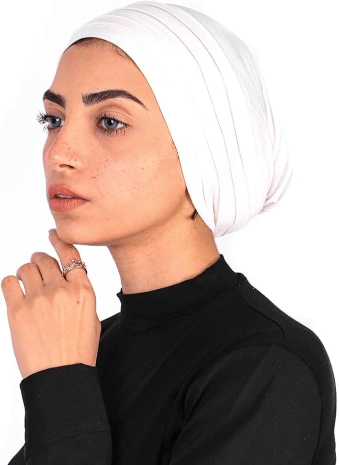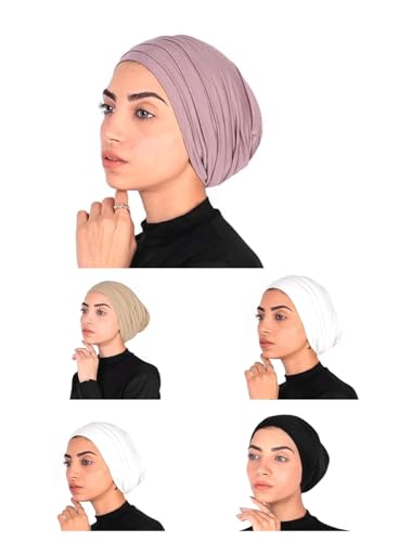 Generic - طقم بونيه طبقات قطن ليكرا بكُسر للنساء مكون من 5 قطع مختلفه الالوان ابيض واوف وايت واسود وبيج وموف، مقاس واحد