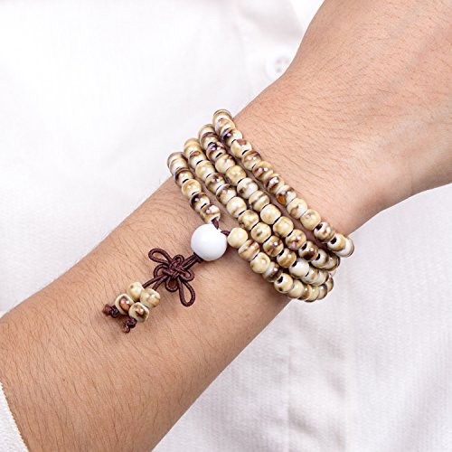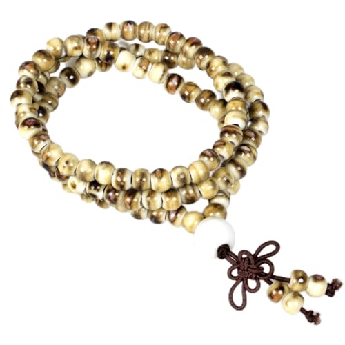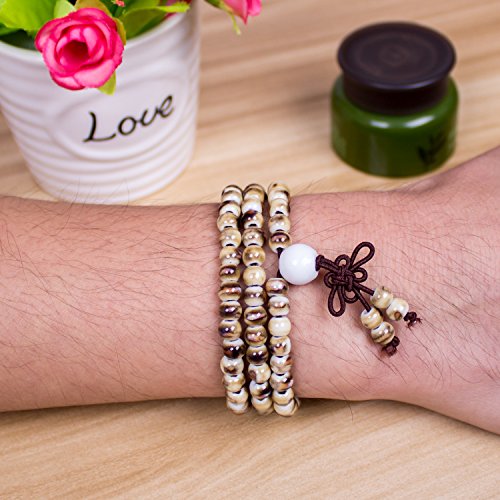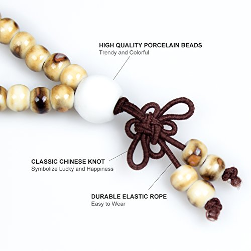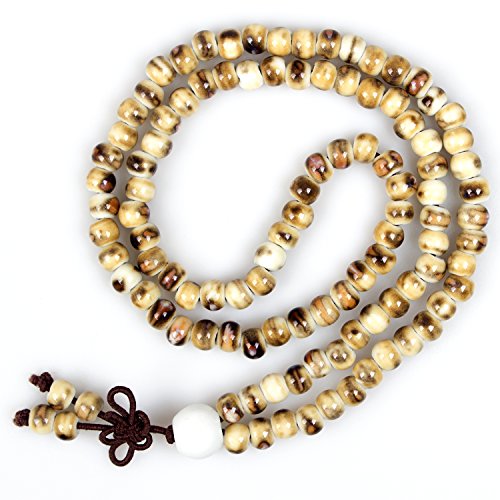 PWMEN - Women Men Fashion Hand Craft Brown 108 Prayer Porcelain Mala Beads Religious Bracelet Necklace(Tiger Skin)