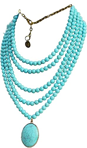 Generic - عقد نسائى متعدد الادوار من الفيروز الطبيعى بقلاده والنحاس