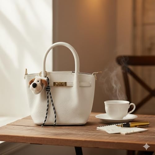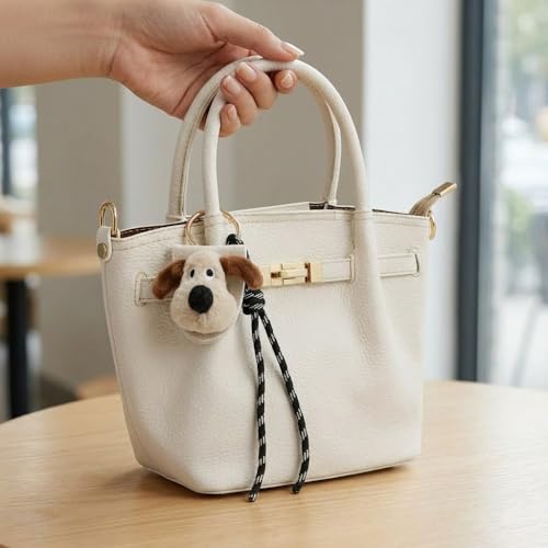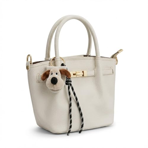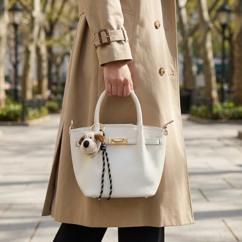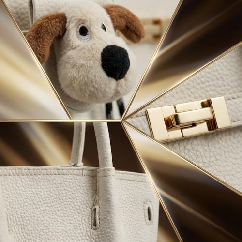 Women Pebble Leather Handbag with Plush Puppy Medallion Shoulder Bag Top Handle Gold Lock Fashion Classic Design Available in Multiple Colors