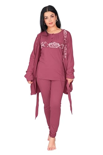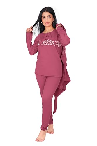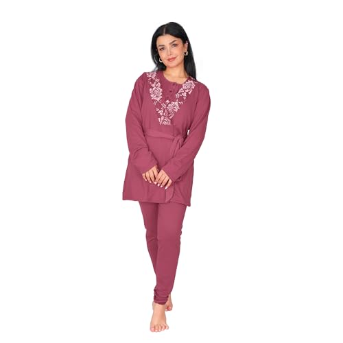 Dadoush - Women's 3 Piece Comfy Pajama Set, White Floral Pattern, with Waist Belt