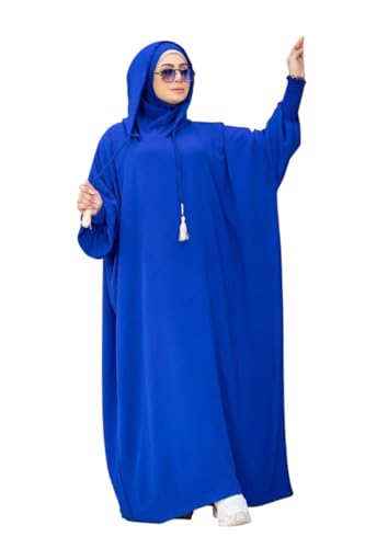 Generic - عباية نسائية بأكمام واسعة، لون أزرق ملكي، فضفاضة، مع حجاب، تصميم إسلامي متواضع