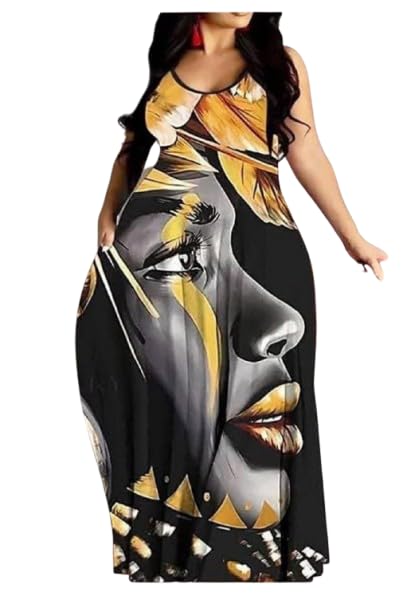 Generic - Women's Art Print Long Home Dress, Fashion Design, Black and Gold, One Size, Elegant Style for Occasions