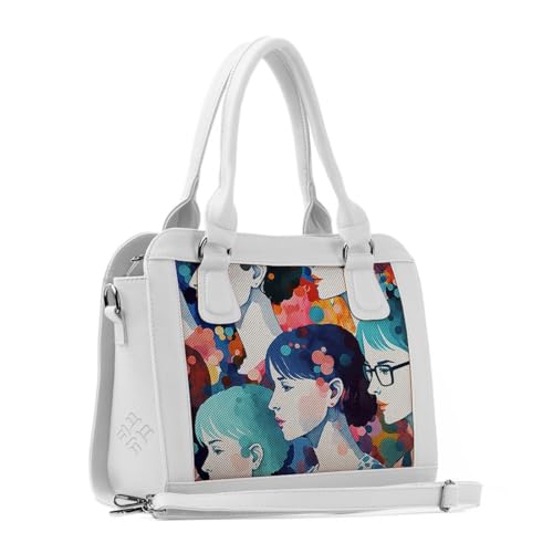 Generic - Women's Artistic Print Hobo Handbag, White Faux Leather with Multicolour Design, Shoulder Strap