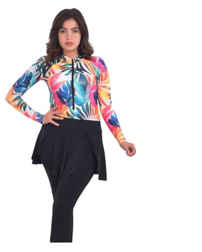 Generic - Women's Athletic Skort Set with Floral Print Zip-Up Top, Long Sleeve Workout Outfit, Black and MulticolourSet