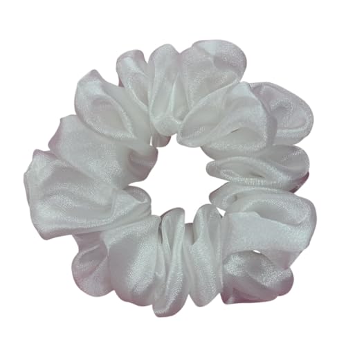 Generic - ربطة شعر مطاطية كبيرة من القماش الأبيض، تصميم مجعد، للنساء