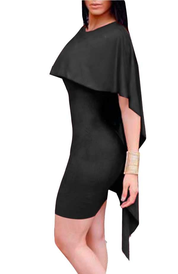 Generic - فستان نسائى أسود بودى كون بقصة مروحة دون اكمام