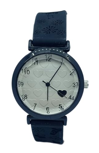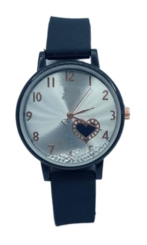 Generic - Women's Black Casual Watch with Heart and Moving Crystal - Comfortable Silicone Band - Youth Design