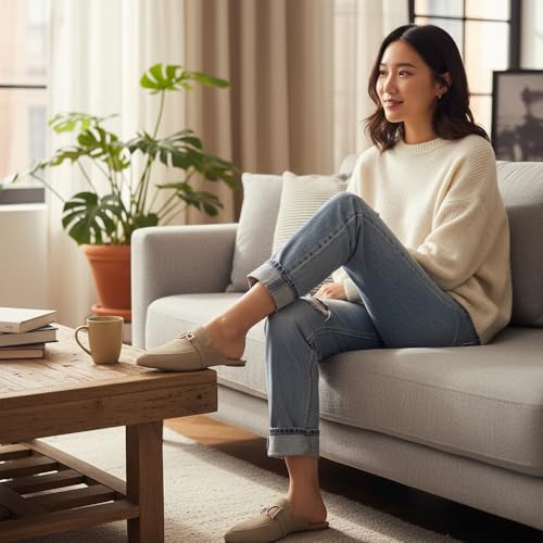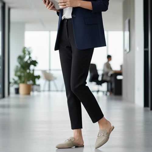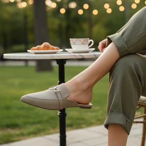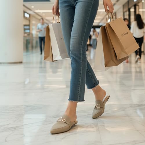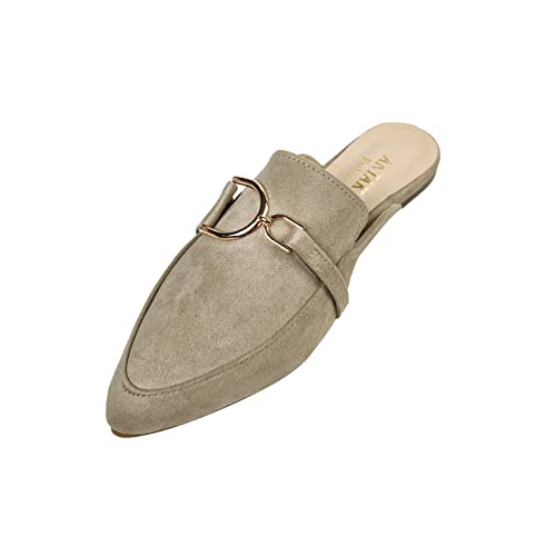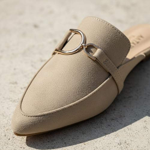 Generic - Women's Black Pointed Head Sabu, Mule Suede Flat Slip-On Shoes for Home or Work Office Comfortable and Stylish with Luxury Gold Buckle (Beige, 39)