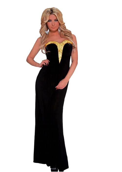 Generic - Women's Black Sequin Gold Off Shoulder Maxi Dress