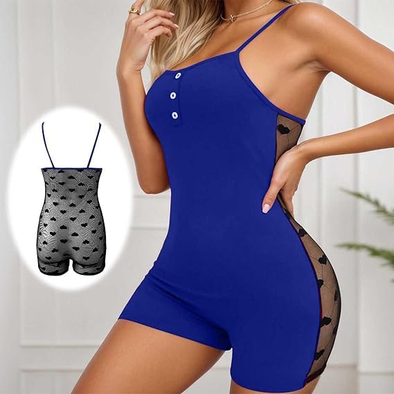 Generic - Women's Bodysuit Romper with Mesh Panel Detail, Butter Material, Spaghetti Strap, Fitted Style Up to 65 KG