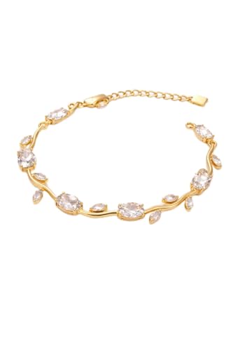 Generic - Women's Bracelet Stainless Steel Gold Plated with Crystal Lobes Elegant Design