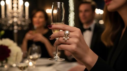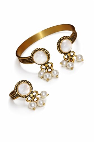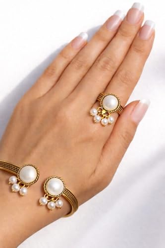 Generic - Women's Brass Pearl Set – Brass Bracelet and Ring | Elegant Classic Set and Pearl Pendants | Suitable for Gifts and Evening
