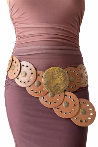 Generic - Women’s Brown Faux Leather Cowboy Inspired Belt with Antique Gold Medallion Buckle – Adjustable Cowboy Belt