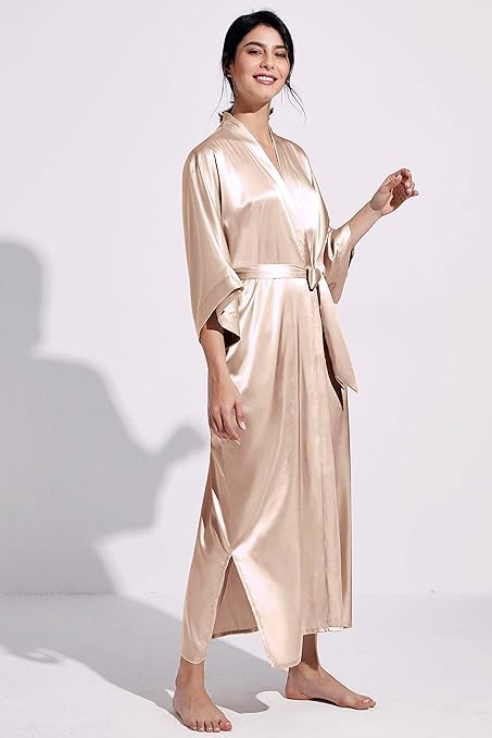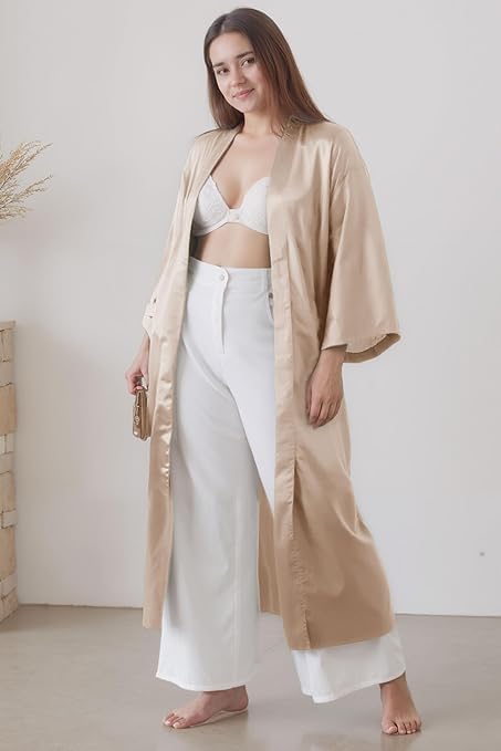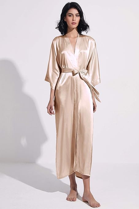 Generic - Women's Cafe One Size Satin Long Robe Wide Sleeve Lingerie Robe 90:50 KG