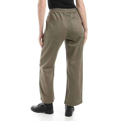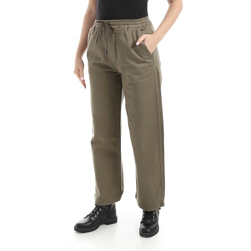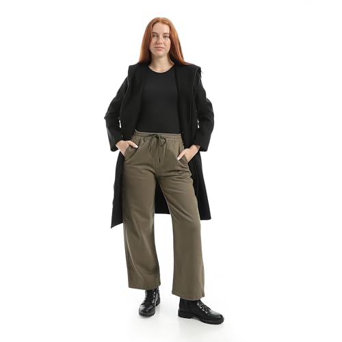 Coctail - Women's Casual Cargo Pants, Olive Green, Drawstring Waist, Wide Leg, Relaxed Fit with Side Pockets-19280