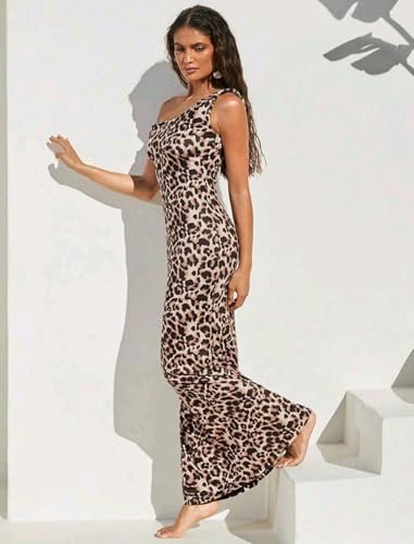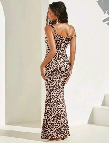 Generic - Women's Casual Leopard Print Asymmetrical Knitted Suspender Dress
