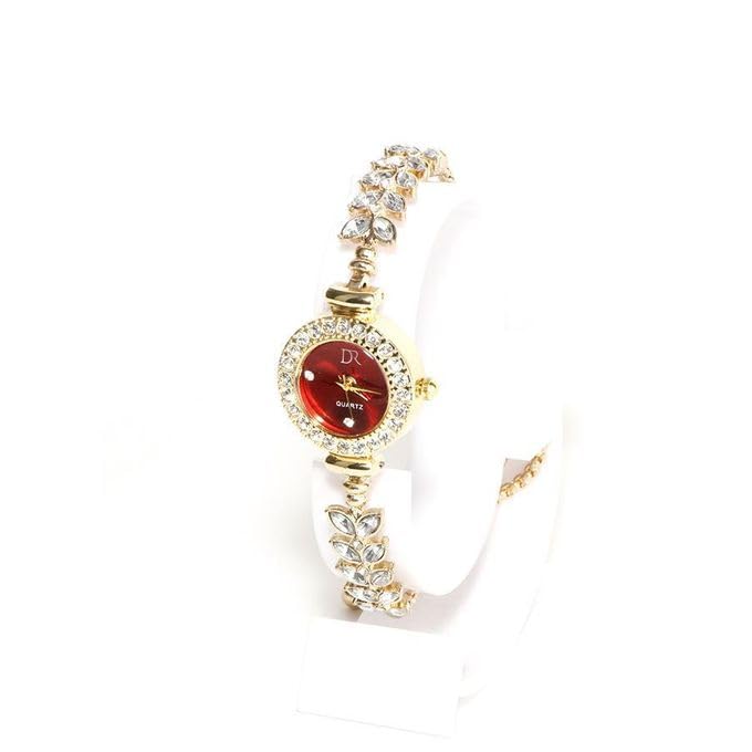 Generic - Women's Casual Watch - Analog-Quartz-Band Stainless Steel Gold - Maroon Dial,DR11