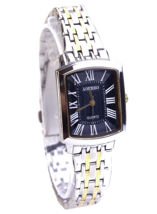 Generic - Women's Casual Watch - Analog - Quartz - Gold Inlaid Silver Stainless Steel Band - Black Dial BO06