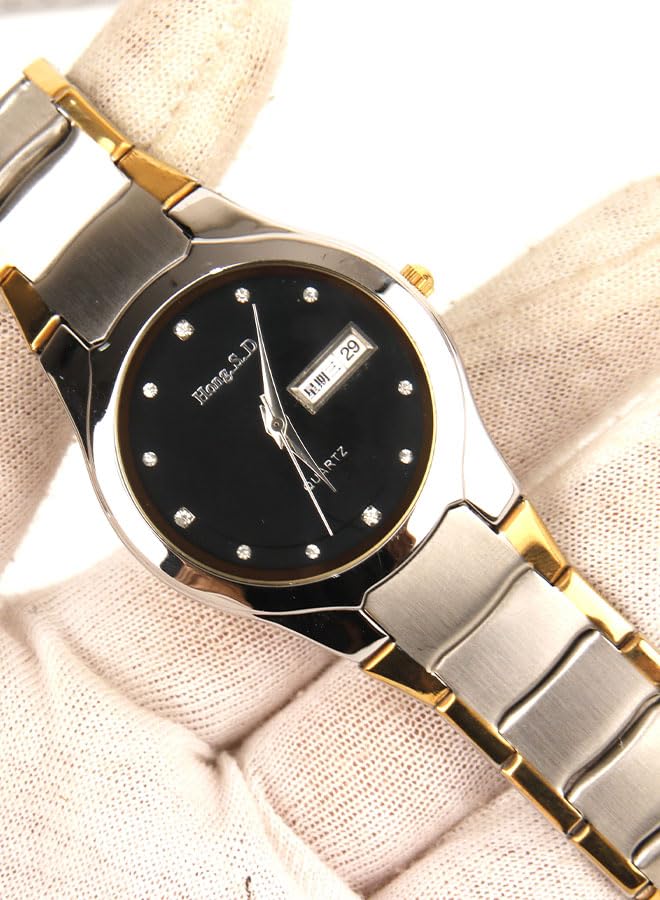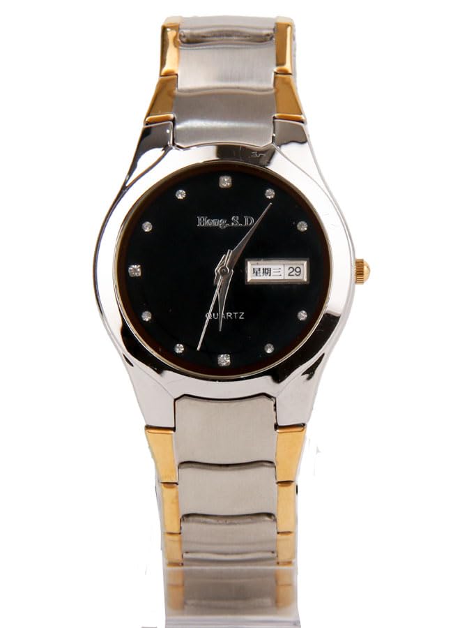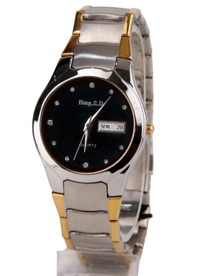 Generic - ساعه يد كاجوال حريمي - انالوج- كوارتز- باند ستانلس ستيل فضي مطعم بذهبي - مينا سوداء SD11