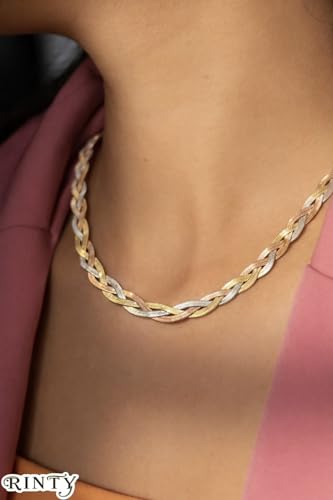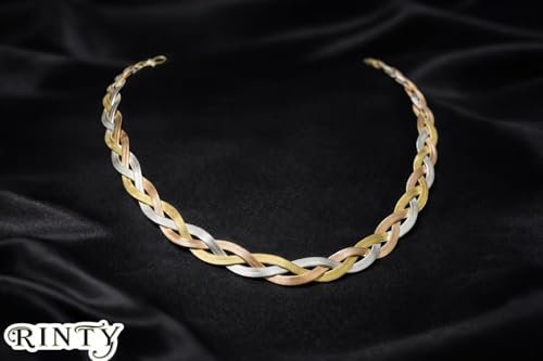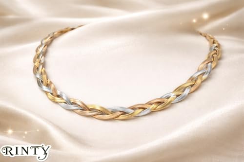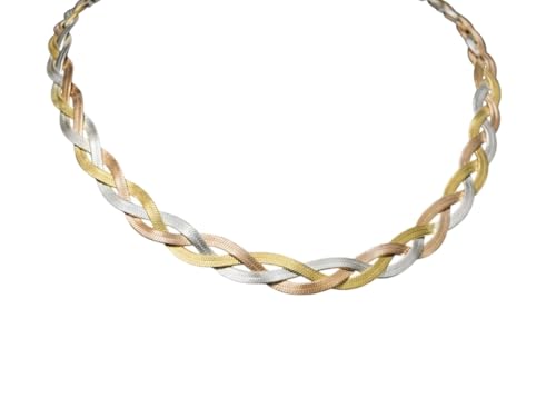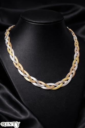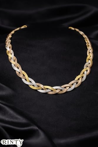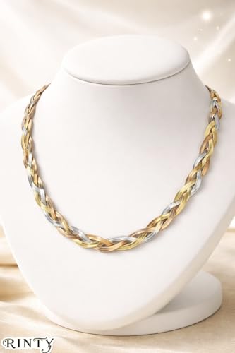 Generic - Women's Chain Turkish Steel Plated Tri-Color Braided Design, Gold, Silver and Rose Gold