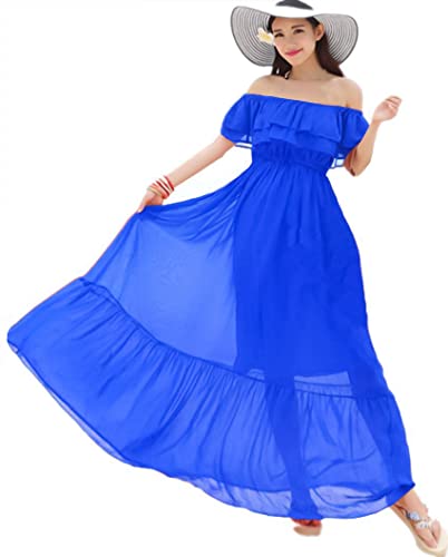 Generic - Women's Chiffon Halter Cap Sleeve Chiffon Dress Blue