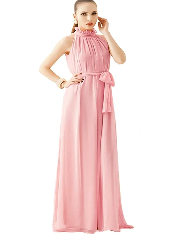 Generic - فستان شيفون طويل بدون اكمام، لون بينك للنساء