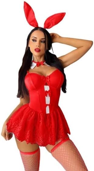 عام - Women's Christmas Lingerie Costume, Red with White Fur Trim, Off-Shoulder Dress with Bow Detail, Santa Theme, size up to 80