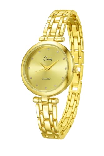 Generic - ساعة نسائية كلاسيكية، ذهبي، معدن مطلي بالذهب، قطر ٣,٥ سم، مرصعة بالكريستال، سوار معدني متشابك، مينا فضي، حركة كوارتز، للمناسبات الرسمية واليومية