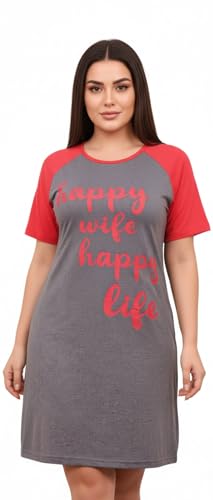 Generic - Women's Comfortable Sports Nightdress, Grey and Red, Plus Size, Fashion Design with Happy Text Print