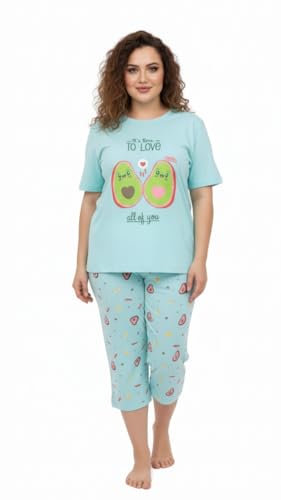 Generic - بيجامة نسائية مريحة للمنزل، طقم قطعتين بتصميم أفوكادو، لون أزرق فاتح، مقاس كبير، بنطلون كابري مع تيشيرت