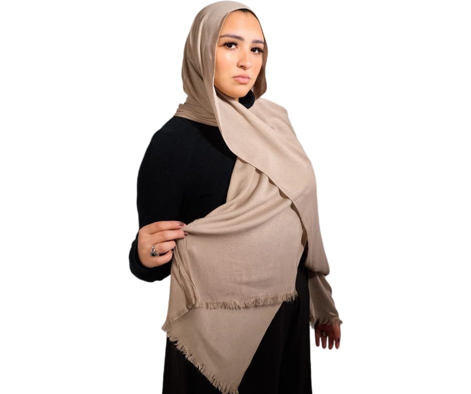 Generic - Women's cotton gauze Hijab, Beige, Soft Fabric with Fringe Detail, Modest Islamic Headscarf
