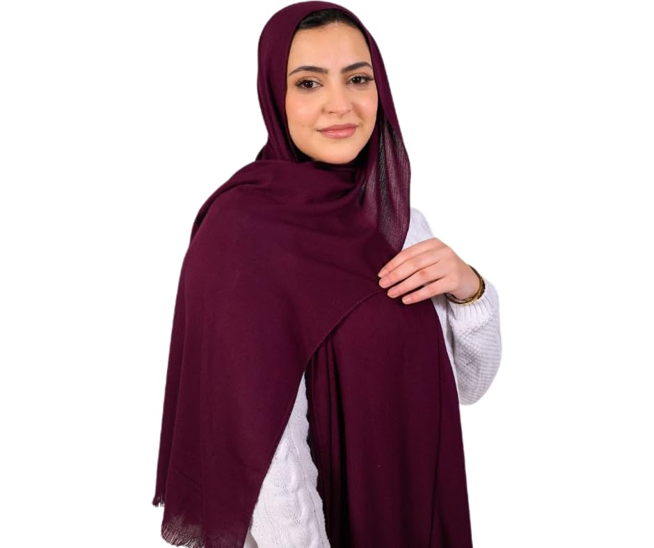 Generic - Women's cotton gauze Hijab, Burgundy, Lightweight with Fringed Edges, Modest Islamic Head Covering