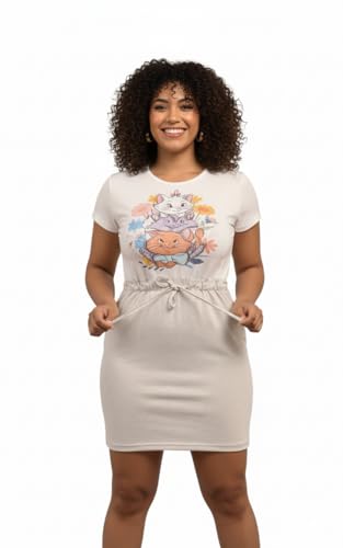 Generic - Women's Cotton Short Dress Casual Cat Print White Light Grey Waist Belt