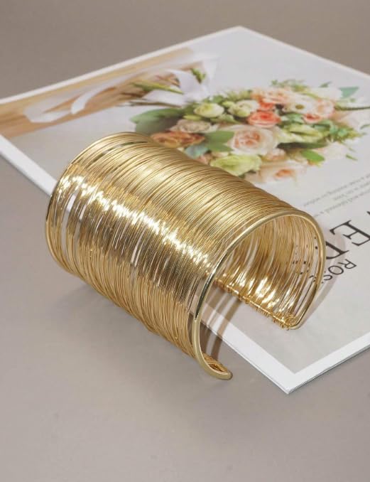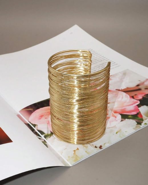 Generic - Women's Cuff Bracelet – Interlocking Metal Wire Design – Shiny Gold Tone – Stylish & Casual Accessory