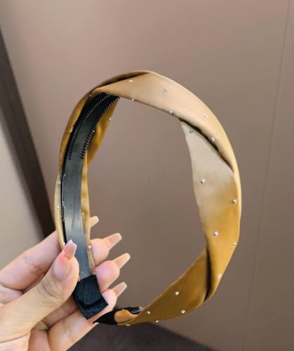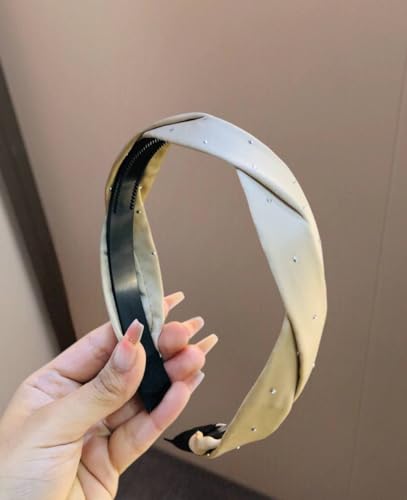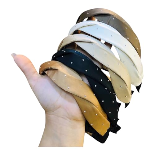 Generic - عصابة رأس نسائية مطاطية، متعددة الألوان (أبيض وأسود وبيج)، مزينة بالكريستال، للشعر والأزياء اليومية