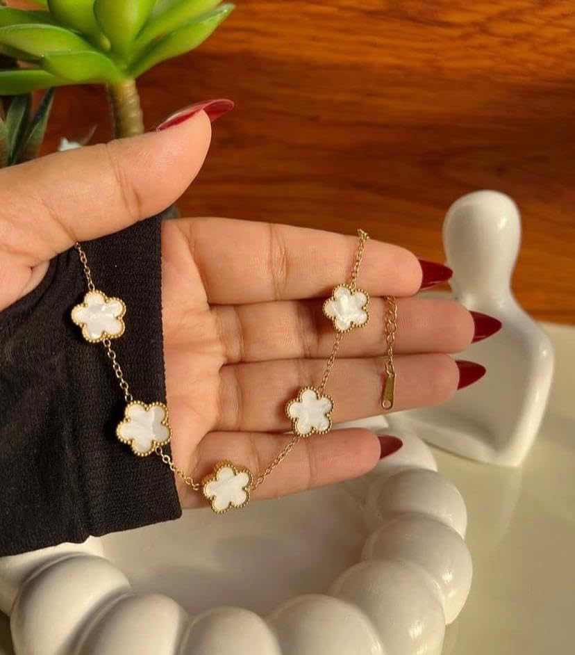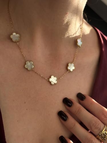 Generic - Women's Elegant Five White Flower Necklace Gold Chain