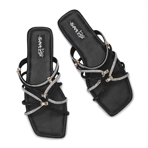 Generic - Women's Elegant Glitter Studs Flat Heel Slippers - Comfortable Sole