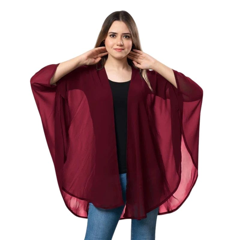 Generic - Women's Fashion Chiffon Cloak Kimono Style Wine Free Size