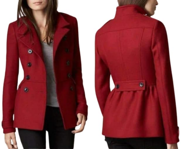 Generic - Women's Fashion Red Coat Classic Double Breasted Button Waistband