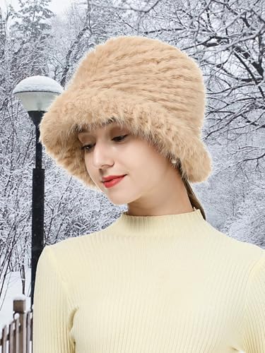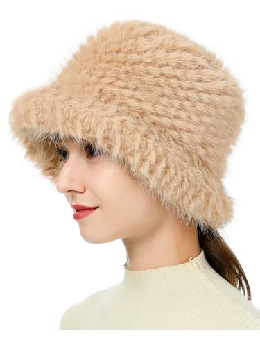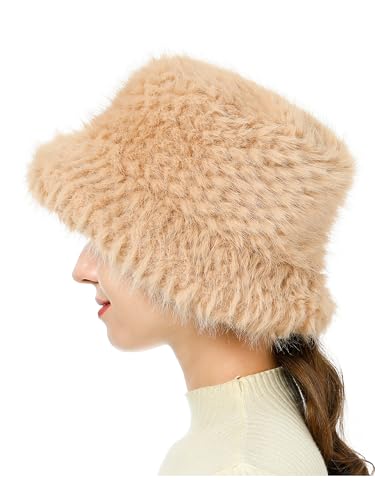 Rulala Fancy - قبعة باكيت من الفرو الصناعي للنساء بنمط تيدي قبعة كلوش شتوية دافئة من الفرو لصياد السمك